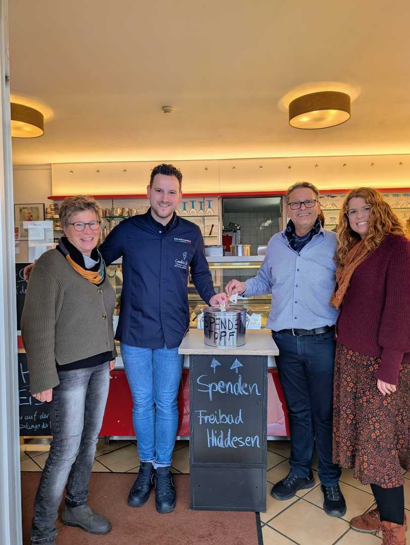 Am Sonntag den 26.10. endete auch die diesjährige Eissaison bei Daniele! Leckermäuler konnten ein letztes Mal kalte Köstlichkeiten genießen. Familie Carlet lud alle Hiddeserinnen und Hiddeser zum kostenfreien Eisgenuß ein und bat dafür um Spenden für unser Hiddeser Freibad. Beliebte Sorten waren schnell verputzt und der Bauch des Spendenschweins füllte sich, so dass am Ende eine stattliche Summe zusammen kam! Die FBI dankt Familie Carlet für die tolle Idee und die großartige Unterstützung!